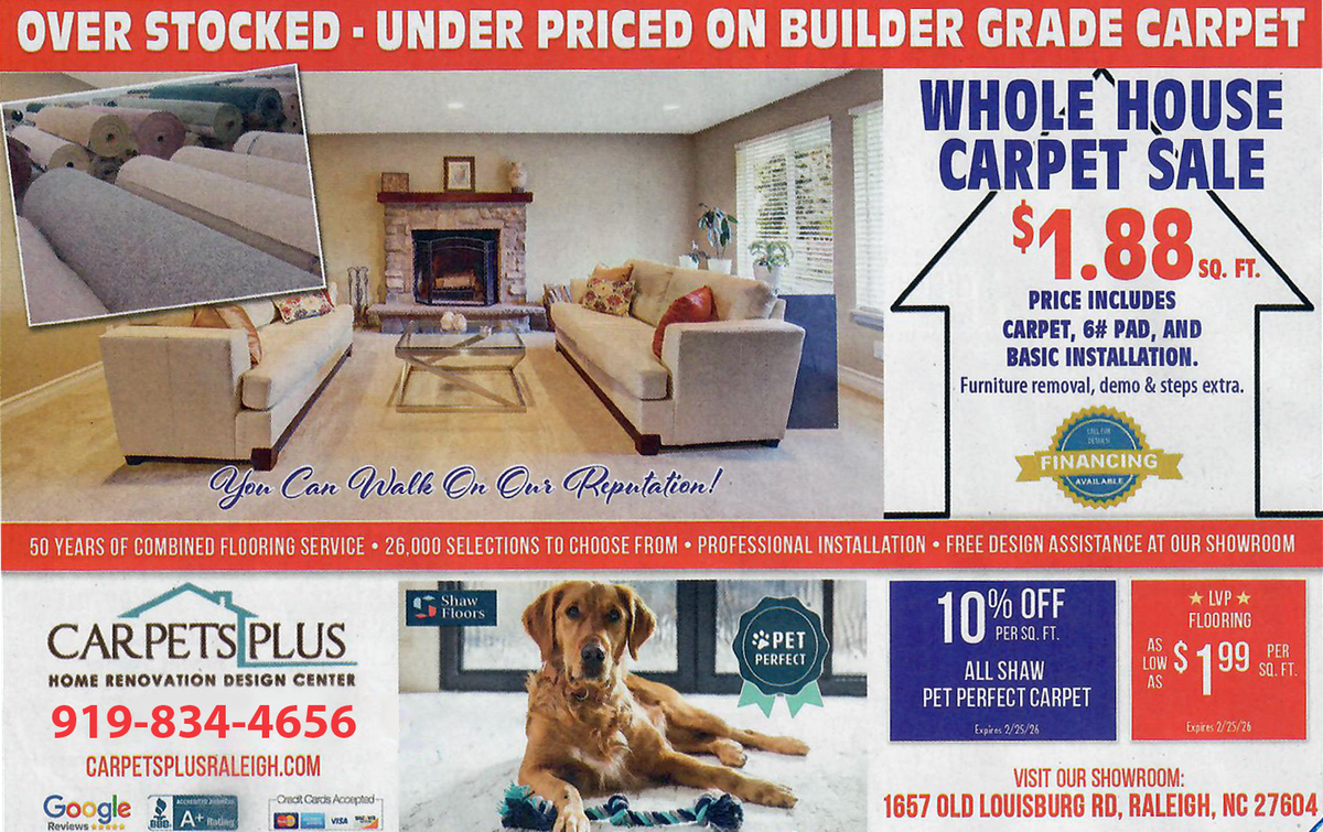 I had a fantastic experience working with Carpets Plus of Raleigh! After obtaining multiple quotes, they offered the best prices—despite providing the exact same carpet as other companies. From helping me select the right carpet to placing the order and coordinating installation, their team was incredibly helpful and professional. The installation process went smoothly, and the carpet looks amazing! I wouldn’t hesitate to do business with them again. Highly recommend!